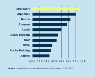 "Vor dem Hintergrund der dynamischen geopolitischen Entwicklungen fehlt es wohl den Märkten und damit auch den Profianlegern etwas an Orientierung, wohin die Reise gehen wird. Weiterhin sind die US-Unternehmen extrem dominant", erläutert Mathias Heiß, Deutschland-Chef der Universal Investment. "Wir sehen nur geringe Verschiebungen. Warten wir ab, ob 2026 deutlichere Änderungen bereit hält. Die globale Diversifikation ist ein Thema, das die meisten Profis beschäftigt. Es wird ein spannendes Jahr, denke ich." (fp)