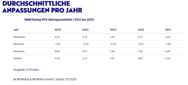 Der Trend zu leicht steigenden Neugeschäftsbeiträgen in der PKV-Vollversicherung hält an, zeigt das Beitragsstabilitäts-Rating 2025 des Analysehauses Morgen & Morgen. Warum die Kosten mittelfristig weiter steigen – und weshalb die GKV keine gute Alternative ist.