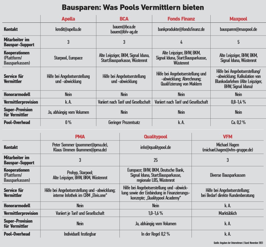 Den vollständigen Artikel über das Bauspargeschäft der Pools lesen Sie in FONDS professionell 4/2023 ab Seite 290 oder nach Anmeldung hier im E-Magazin.