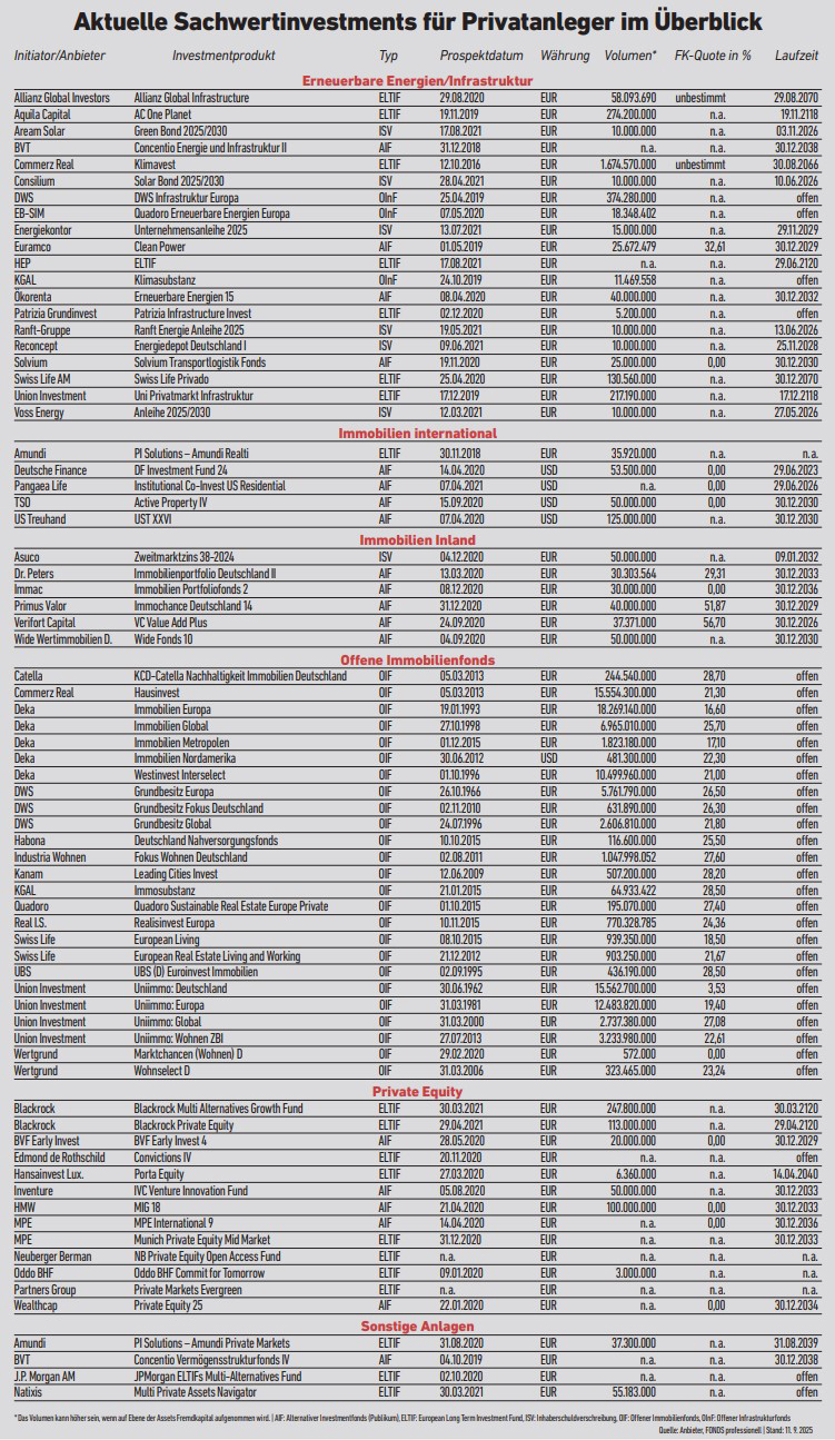 Auf den ersten Blick haben sie vieles gemeinsam, auf den zweiten zeigen sich relevante Unterschiede der beiden Infrastruktur-ELTIFs von Patrizia und Swiss Life Asset Managers. Wir analysieren die Konstruktionsmerkmale – und listen über 70 weitere aktuelle Sachwertangebote für Privatanleger auf.